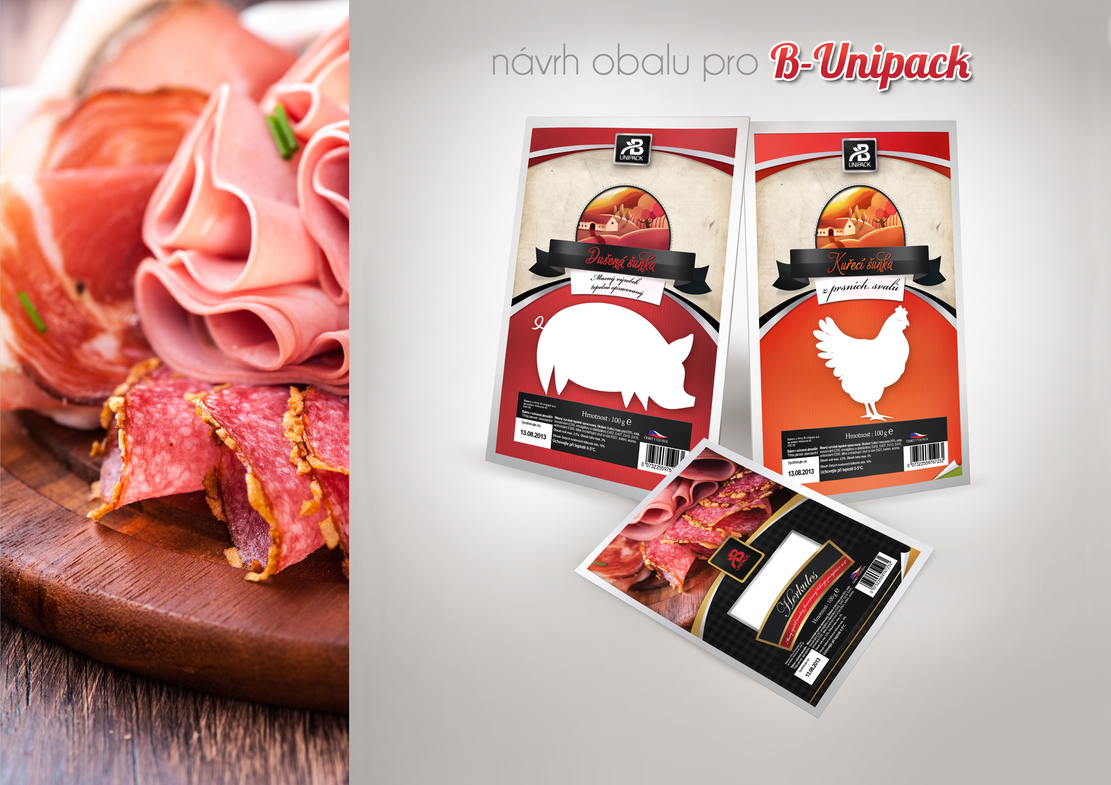 Packaging design for butcher foodstuffs for company B-Unipack.